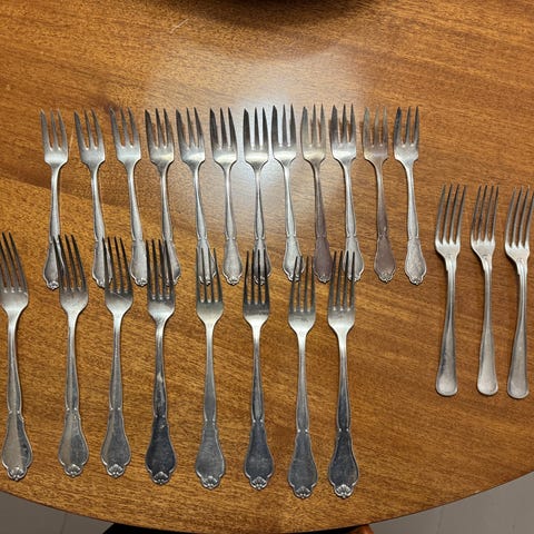 Delene har ensartet dekoration og stempel i bunden med ATLA-mærkning. Egnet til brug som serveringssæt til fx sukker, marmelade eller andre små tilbehør på bordet.