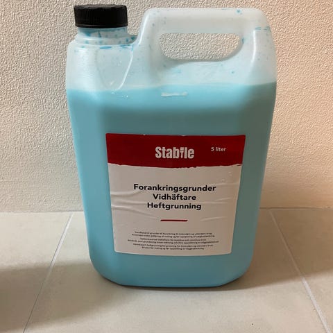 Flugger forankringsgrunder. Grundmaling. 3 liters dunk hvor lidt under 1 liter er brugt.