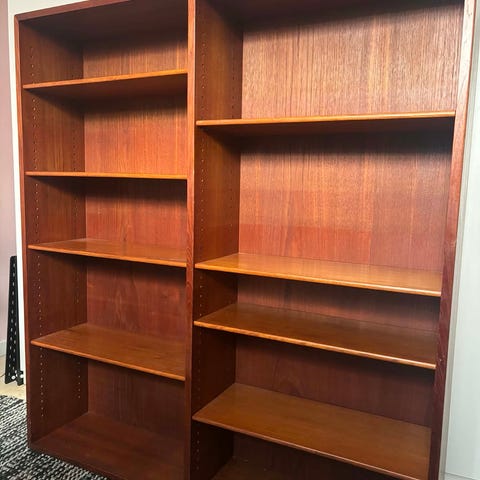Teak reol (finér) med flytbare hylder - typisk 1970’er - 2 stk reoler til salg