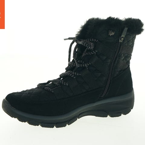 Korte vinterstøvler i grøn/sort med lynlås på yderside for lettere at få på