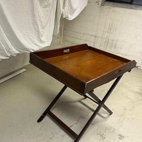 Serveringsbord på hjul, med flisebelagt bordplade.