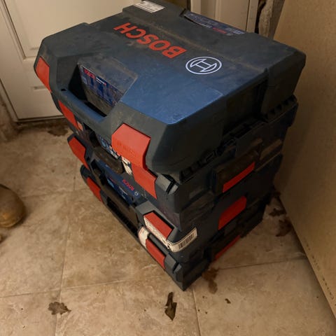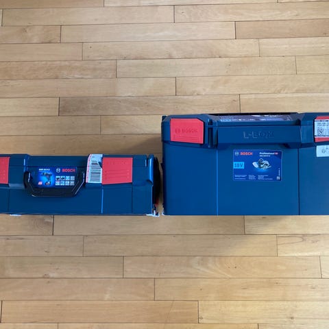Bosch Sortimo værktøjskasse i hård plast i blå farve.