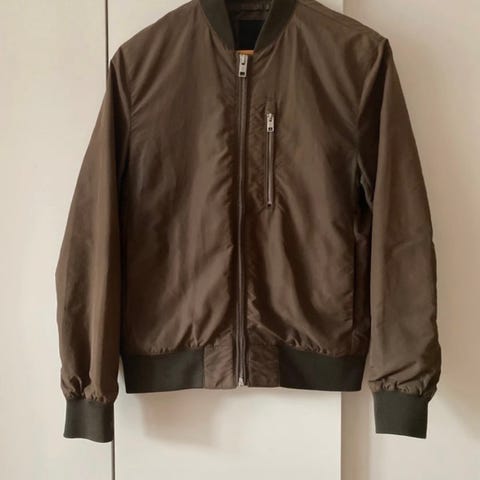 Den har gennemgående lynlås foran, ribkant ved ærmer og forneden samt sidelommer og flere lommer indeni + Ekstra knap