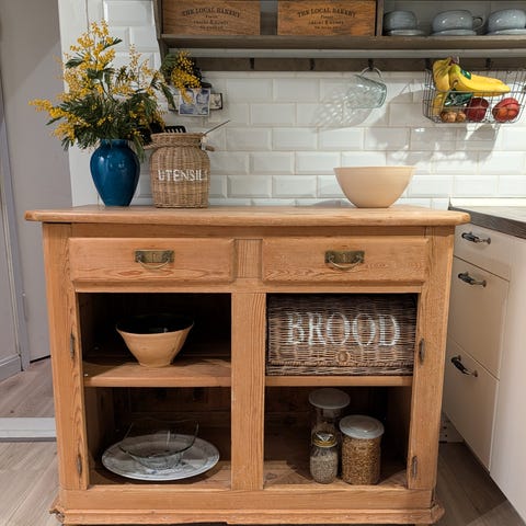 Vintage køkkenskænk i træ - restaureret med kalkmaling