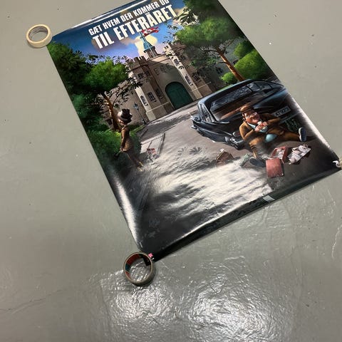Metalskilt i folie. Ca. 20 x 30 cm.