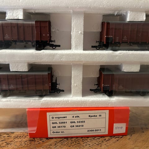 DSB PB Godsvogne 4 stk. 10621, SJ O 36444, DSB QRB 3662, DSB HJ 37652. H0. 39001 Hobby trade.
