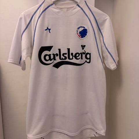 Kappa F.C. København fodboldtrøje til herre i størrelse S. Trøjen er hvid med FCK-klublogo på brystet, Carlsberg-sponsortryk foran samt Kappa-logoer på skuldrene. På ryggen er der spillernavn og nummer. Kortærmet model egnet til fodbold og anden sport eller som supportertrøje.