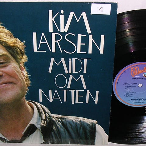 Kim Larsen Midt om natten lp vinylplade. Albummet leveres med originalt cover med for- og bagsideillustration samt inderpose med sangtekster. Standard 12" lp-format, egnet til afspilning på pladespiller med 33 1/3 rpm. Dansk rock/pop album med numre fra filmen og perioden omkring udgivelsen.