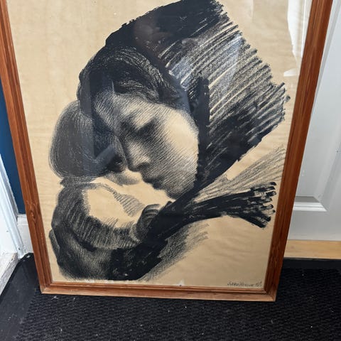 Værket på billedet er en radering med titlen "Portræt af en ung pige" (også kendt som "Kvindehoved. Profil til højre"), skabt af den danske kunstner Axel Hou i 1899.