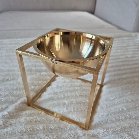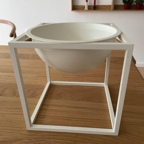 Helt ny Audo Copenhagen Kubus Bowl skål i sort lakeret stål. Skålen er designet som en halvkugle, der hviler i en kubisk ramme. Størrelsen er ca. 23 cm i længde og 23 cm i dybde. Velegnet som frugtskål, til servering eller som dekorationsskål i stue, køkken eller entré. Den sorte lakerede ståloverflade giver et ensartet, mat udtryk, der passer ind i mange typer boligindretning.