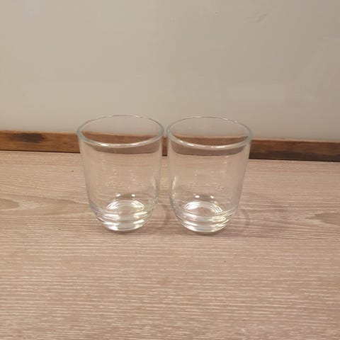 Glas, Små glas, 5 fine glas. 8 cm høje. 7 cm diameter. Koster 60 kr at sende.