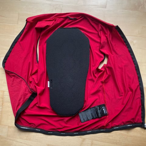 Komfort: Leddelt "skjold" i hård plast, der følger ryggens bevægelser, samt åndbart mesh-materiale på indersiden for god ventilation.
