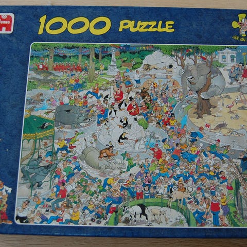 Fint næsten nyt puslespil med dyr fra Zoo, der er 48 brikker, hvor flere af dem er formet som dyr, lavet i kraftigt karton, det måler 36,5•28,5 cm nypris 80kr