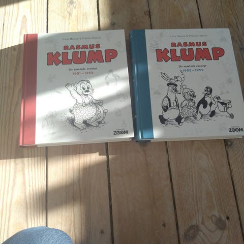 Rasmus Klump billedbøger sæt med 2 stk, titlerne "Rasmus Klump i undervandsbåd" og "Rasmus Klump bygger skib". Bøgerne er illustrerede tegneseriehistorier med farvetegninger og tekst på dansk. Bagsiderne viser oversigt over andre Rasmus Klump titler. Velegnet som højtlæsning eller selv læsning for børn, der kan lide klassiske tegneserier og historier om Rasmus Klump og hans venner.