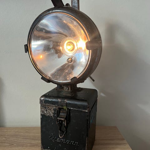Original Eisemann industrilampe fra et sted mellem 1930-50’erne i fin og hel stand med flot patina H37cm isat ledning til stikkontakt mp 1800kr afhentes i 8570 Trustrup eller sendes for 65kr (Har 2 stk)