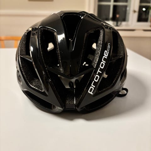 Meget aerodynamisk landevejshjelm fra Kask. Brugt i 6 måneder. Står flot men med lidt brugsridser. Har aldrig været styret.