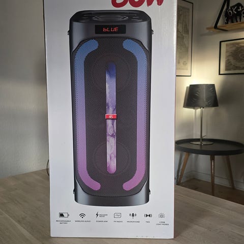 Hi5 Party Speaker XXL højttaler med en effekt på 60W. Højttaleren er udført i sort design med integrerede lysfelter på fronten. Velegnet som fest- og partyhøjttaler til afspilning af musik i større rum eller ved sammenkomster. Leveres i original emballage.