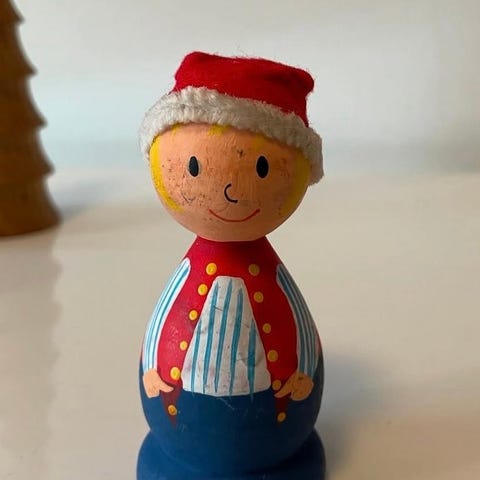 Svensk Trænisse, Ældre utroligt velholdt nisse i træ. Fra Sverige. Ca. 16 cm høj.