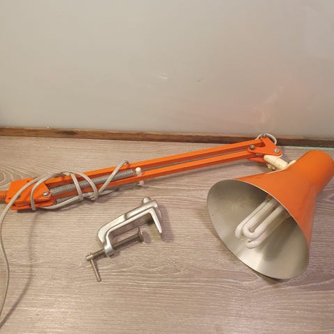 Blå arkitektlampe.L på skærm 18 cm, Dia 15 cm.Gå til varen, for flere billeder.(A4).