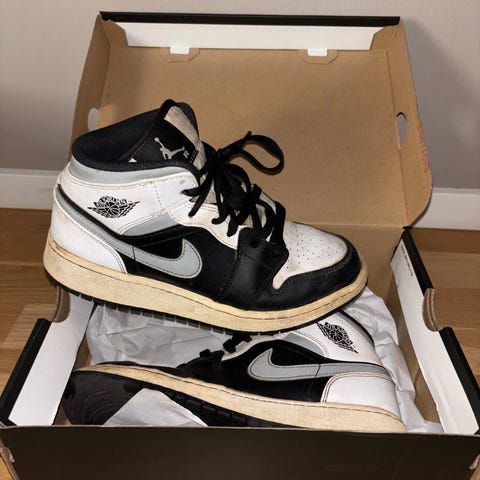 Helt nye Air Jordan 1 Mid i farven pure Platinium/Sky.