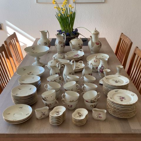 Alt er uden brugsspor samt ubeskadigede blomstermotiver og smukke guldkanter.