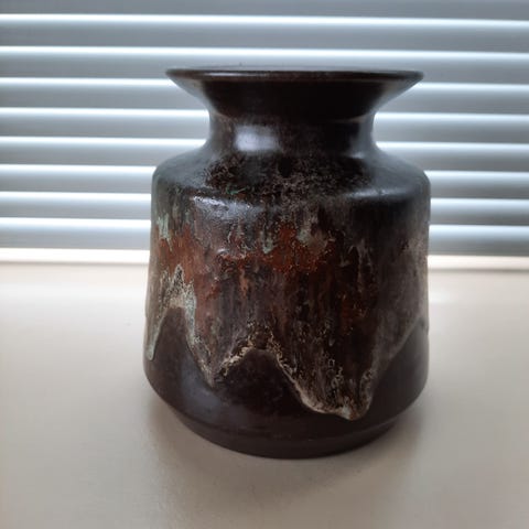 Stentøj, Vase, Judi Kunst Danmark, Hulvase fra Judi Kunst Danmark. Vasen er udfærdiget I et månekrater design med en fantastisk smuk glasur I brune og blå farver.