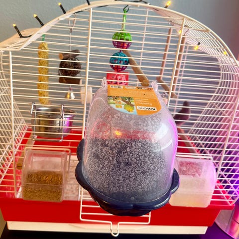 Buret og alt tilbehør medfølger.