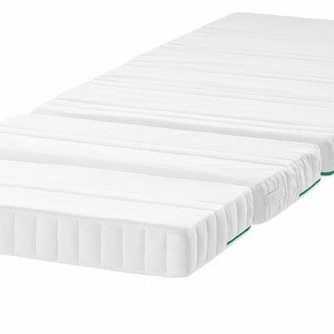 IKEA madras i hvidt betræk. Madrassen har bølgeformet quiltning på overfladen og et aftageligt topbetræk, som kan løftes af. Velegnet til brug på sengestel eller sengeramme i tilsvarende størrelse. Passer til almindelig brug i soveværelse eller gæsteværelse.