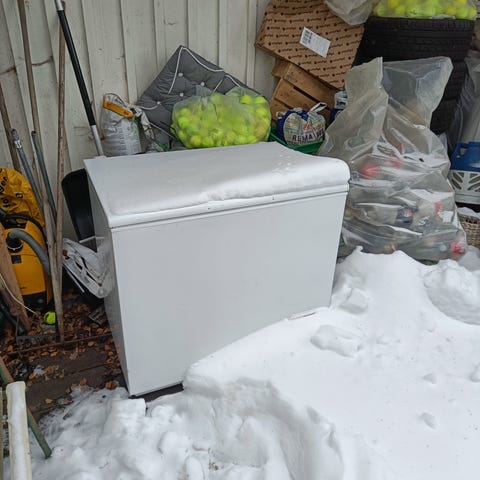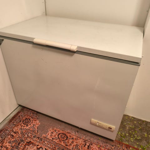 Electrolux kummefryser i hvid. Fryseren har topåbning med håndtag på låget og frontbetjening med indikatorlys. Velegnet til opbevaring af frosne madvarer i fx bryggers eller kælder. Model- og serienummer fremgår af typeskiltet på siden af fryseren, som kan bruges til at slå specifikationer som volumen og energiklasse op hos producenten.