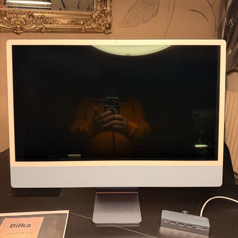 Apple iMac 24" i grøn, fra 2023 med Apple M1-chip og 8 GB hukommelse og 512 GB SSD harddisk. Computeren er i fin stand og fungerer perfekt. Har brugt den bl.a. til regnskab og derfor gaming musen. Hvis man ønsker Magic mouse ligger de til ca. 200,- kr brugt.