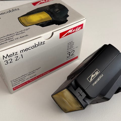 Vivitar 285HV kamerablitz til montering i kameraets tilbehørssko. Blitzhoved med zoom og vippefunktion samt manuel indstilling via drejeskive på siden. Enheden har tilslutningskabel og forskellige afstands- og blændeangivelser på bagsiden til brug ved manuel eksponering. Velegnet til fotografering med eksternt blitzlys med f.eks. analog spejlrefleks, hvor man ønsker kontrol over lysstyrke og rækkevidde.