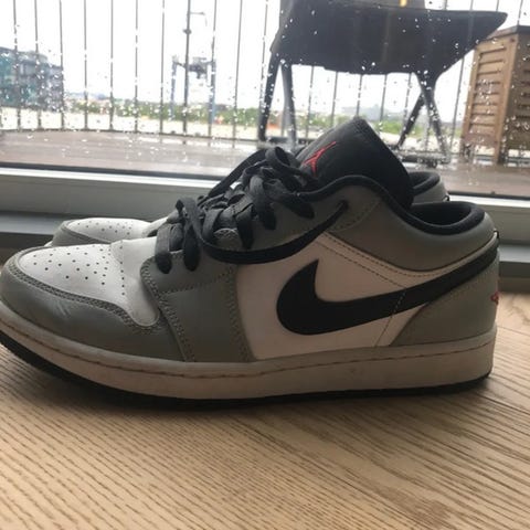 Jordan 1’s i str. 43. Højskaftet model i hvid med lyse detaljer og gummisål i kontrastfarve. Overdel med snørelukning og perforeret tåparti for ventilation. Velegnet som hverdagssko eller fritidssko.