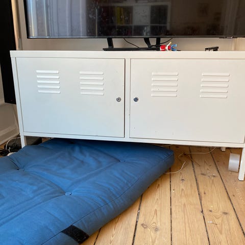 Møbel fra Ikea til tv og musikanlæg.eller andet. Bag skabslågen tv er der 3
