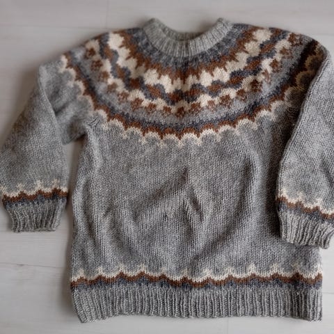 Kvitebjørn genser strikket i lettlopi som er 100% islandsk uld.