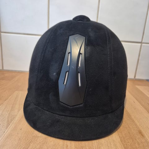 CRW ridehjelm str. S (54-58 cm) med ventilationsindsats foran. Hjelmen har justerbar rem og indvendigt meshfor. Brugt i 1,5 år, sælges pga. forkert pasform til min datter.
