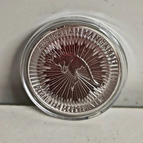 1 oz sølvmønt krugerrand i velouræske . 4 stk tilbage , 2 i gaveæske. 800 kontant