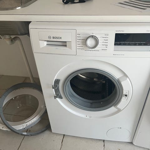 Vaske-tørremaskine bortgives. Kan benyttes som både vaskemaskine og tørretumbler.