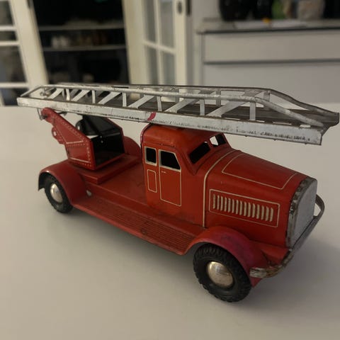 Brandbil legetøjsbil rød gul blå plast