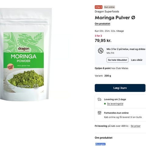 Er du vild med smoothies eller sund madlavning? Jeg har 3 uåbnede poser Dragon Superfoods Moringa Pulver til salg.