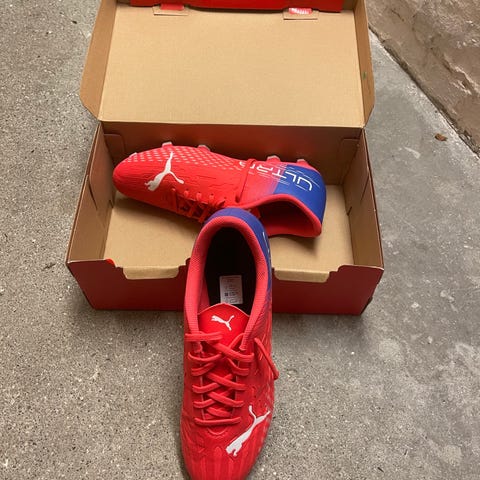 Flotte Puma fodboldstøvler i mørkeblå/rød med knopper.