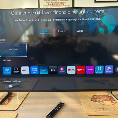 - Tizen Smart TV med Wi‑Fi, AirPlay 2 og webbrowser