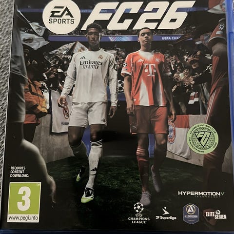 EA Sports FC 25 Playstation 5 spil. Fysisk spildisk i standard PS5-cover. Fodboldspil med PEGI 3 aldersmærkning, egnet til Playstation 5-konsoller.