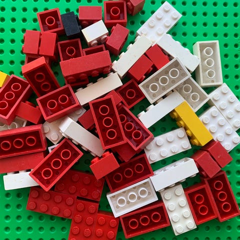Fin samling LEGO klodser med flere specialklodser og mange gamle 'hule' klodser.