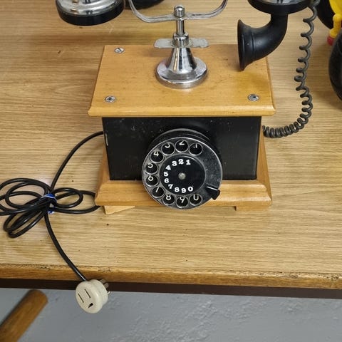 Ældre telefon med drejeskive.