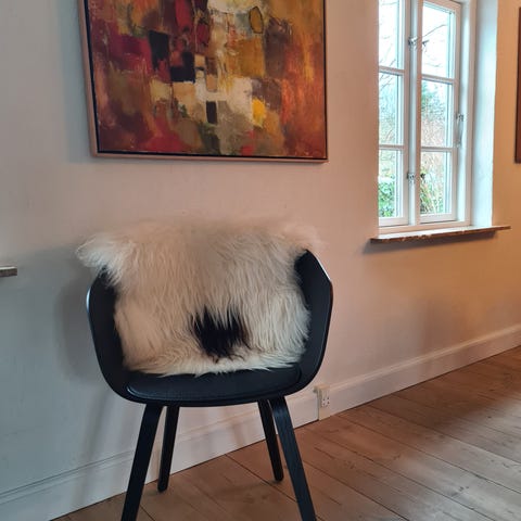Sælges helst samlet. 6 sorte og 2 hvide. Hay spisebord kan også købes. Skind følger ikke med