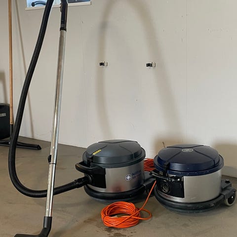 Nilfisk GD 930Q støvsuger. Industristøvsuger med rund beholder og langt orange strømkabel. Leveres med sugeslange, teleskoprør og støvsugerposer som vist på billederne. Velegnet til rengøring af større arealer, kontorer eller værksteder, hvor der er behov for en robust støvsuger med stor beholderkapacitet.