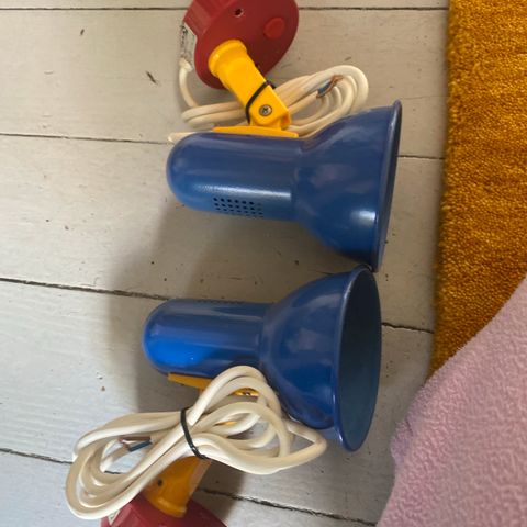 Flot og karakterfuld skrivebordslampe fra 90’erne i stærke primærfarver.