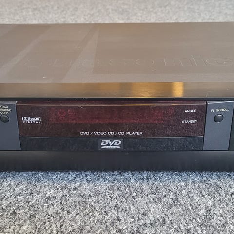 Panasonic dvd-s500 dvd-afspiller i sort. Enheden er beregnet til afspilning af dvd-medier og tilsluttes tv eller anden skærm via bagtilslutningerne. Der medfølger fjernbetjening, som bruger 2 x AAA-batterier (batterier ikke inkluderet). Velegnet til almindelig film- og videoafspilning i hjemmet.