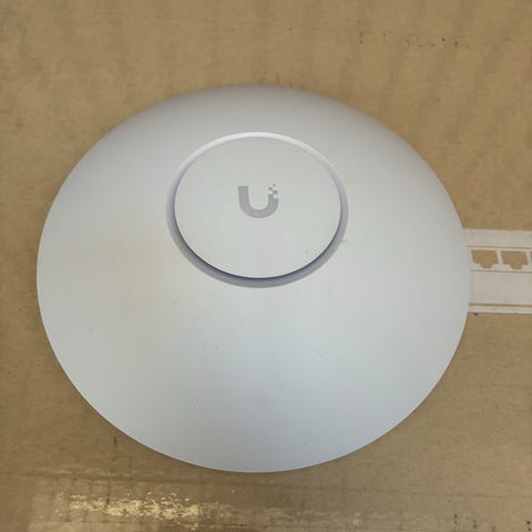 Den originale frontfolie/logo er gået af, så access pointet fremstår helt blankt/hvidt (se billeder). Dette er udelukkende kosmetisk og har ingen betydning for funktion eller ydeevne.