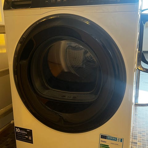 Haier frontbetjent kombimaskine fra 2023. Den virker som den skal, men vi har ikke brug for den efter flytning.